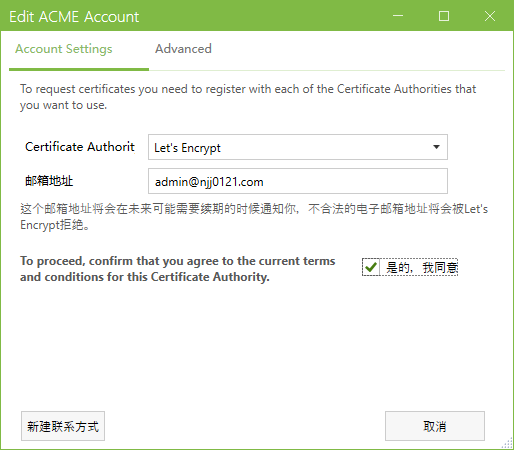 点击ok后回到主界面左上角点击保存,然后在右边点击请求证书,证书就会在上面这张图指定的路径里了,而且会在到期前自动申请新的证书到同样的路径,一般推荐用证书链,极少数情况不用证书链可能有些客户端不能验证证书是否可信。
