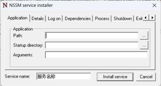 nssm install 服务名称