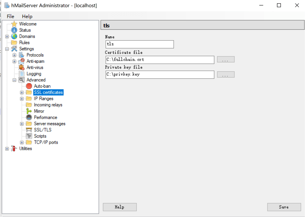 然后需要配置tls证书,在ssl certficates选择add添加包含domain名称的tls证书,这一步是可选的,但是应该配置加密